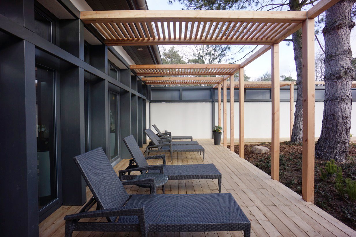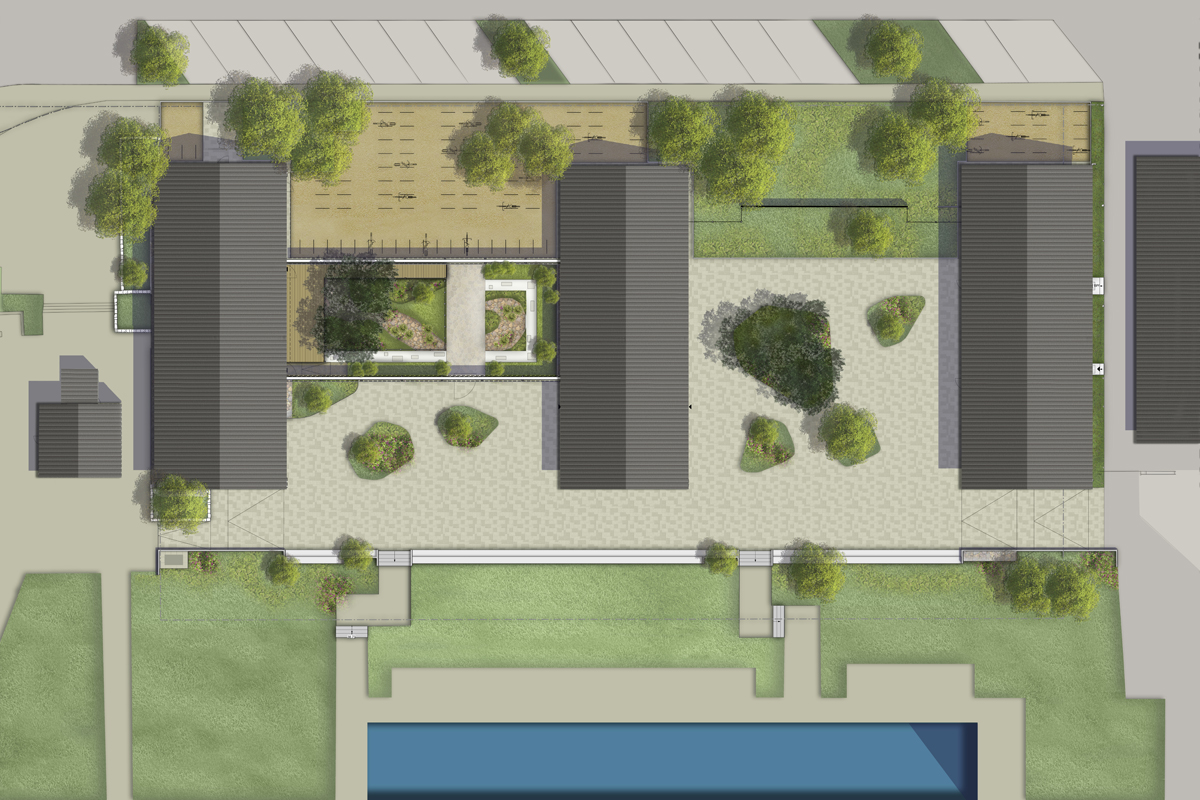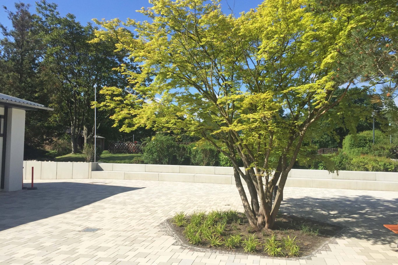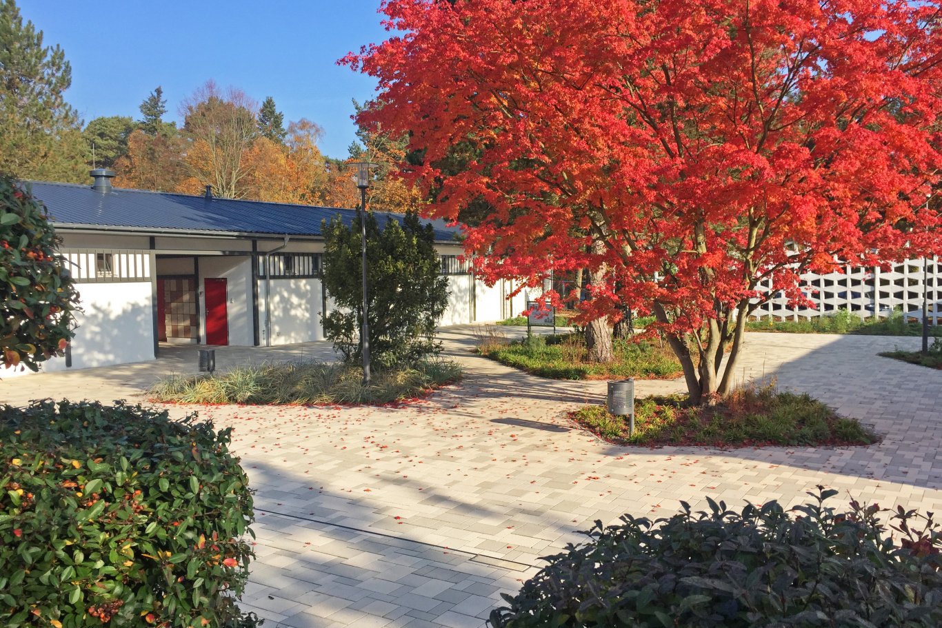 Im Rahmen der Neugestaltung des Freibades Kiebitzberge wurden die Freiflächen zwischen den Funktionsgebäuden, eine Promenade und der Saunagarten neu gestaltet. Im Die bestehenden Bäume und Sträucher wurden weitestgehend erhalten und als Solitäre mit begleitenden Unterpflanzungen in die neuen Pflaster- und Wegeflächen integriert. Bezugnehmend auf den vorhandenen Baumbestand und den japanisch inspirierten Ausdruck der Funktionsgebäude wurden für die Unterpflanzungen überwiegend Gräser gewählt. Seitlich angeordnete Sitzstufen verleihen den großzügigen Erschließungsflächen der Promenade zusätzliche Aufenthaltsqualität. Der helle, in drei Farbabstufungen verlegte Betonstein unterstreicht den schlichten und sommerlichen Charackter der Anlage.