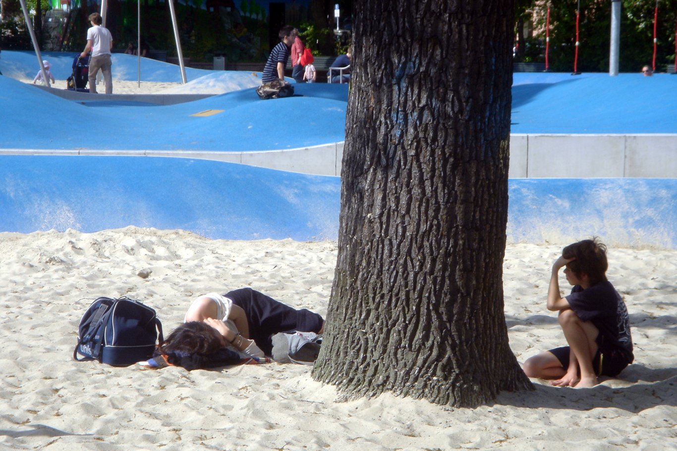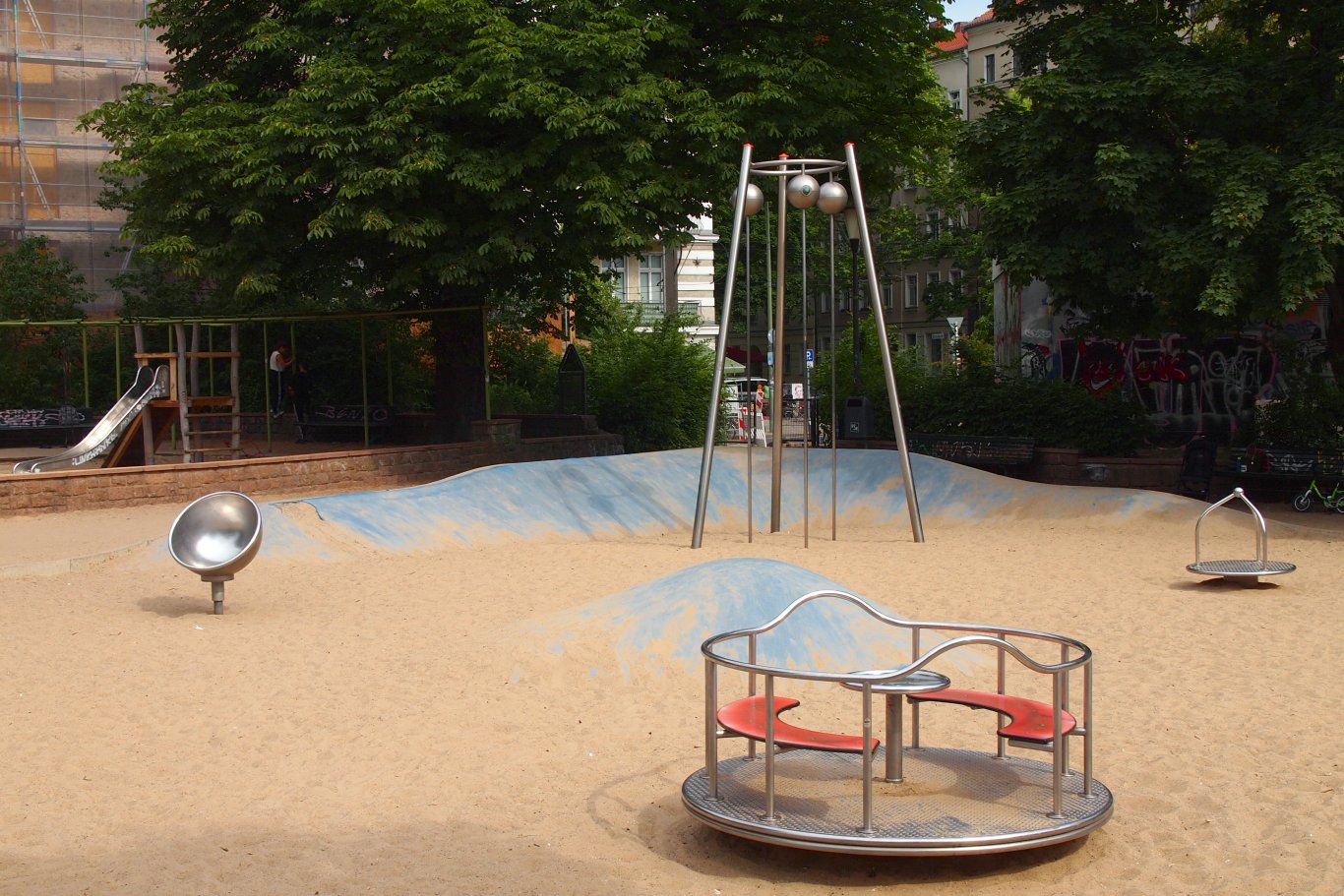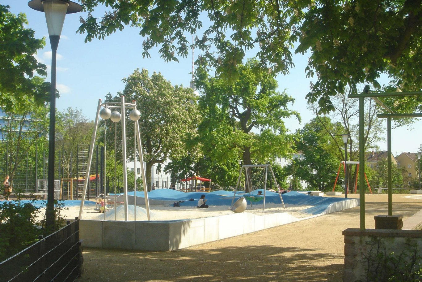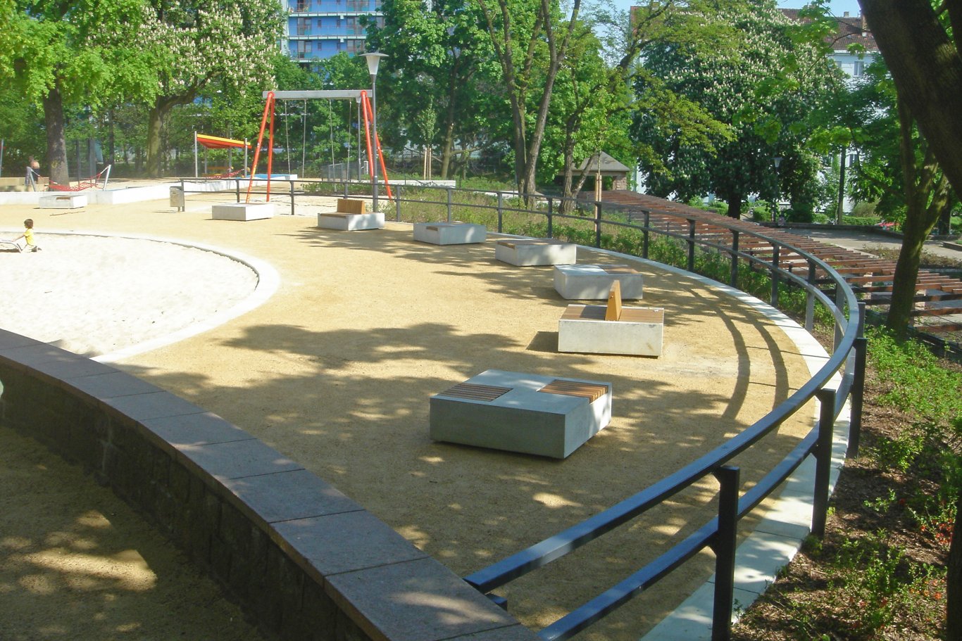 Der neue Spielplatz wurde mit differenzierten Spielbereichen aus Wellen und Sand neugestaltet. Ziele der Umgestaltung waren: